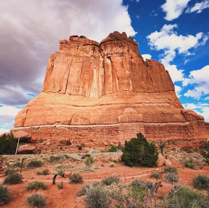 Ik stopte af en toe, gewoon om te proberen het in me op te nemen. Het is een landschap dat buitenaards aandoet en tegelijkertijd hyperaards is. Al die uitgesleten lagen leggen een fossiele historie van honderden miljoenen jaren bloot: zo aards dat de mens er nog niet was om het zich toe te eigenen.