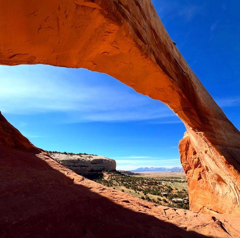 Het was een rit waar ik twee dagen over deed: Van Colorado door de besneeuwde Rocky Mountains naar de woestijn van Utah en uiteindelijk Arizona. Het was misschien wel de mooiste rit die ik ooit had gemaakt door verlaten woestijnlandschappen, rode rotsformaties, uitgesleten steenlagen, elektriciteitspalen in plaats van bomen, een enkel huis op een verlaten vlakte waar altijd een gebrek aan schaduw moest zijn en dan nog het opwaaiende zand dat de weg een rode gloed gaf.