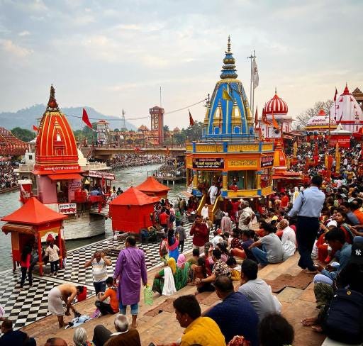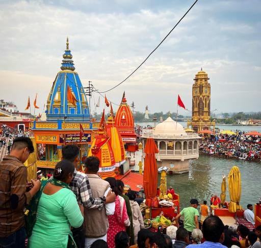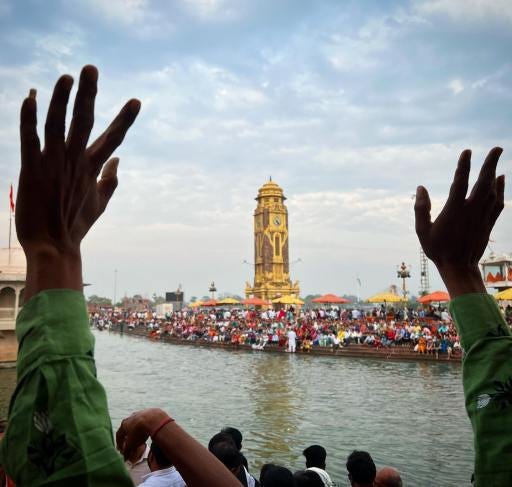 ‘Welkom bij Har-ki Pauri,’ zei een jonge vrijwilliger bij de heiligste plek in Haridwar waar pelgrims van heinde en verre naartoe komen om te baden in de Ganges of er een offer te brengen.