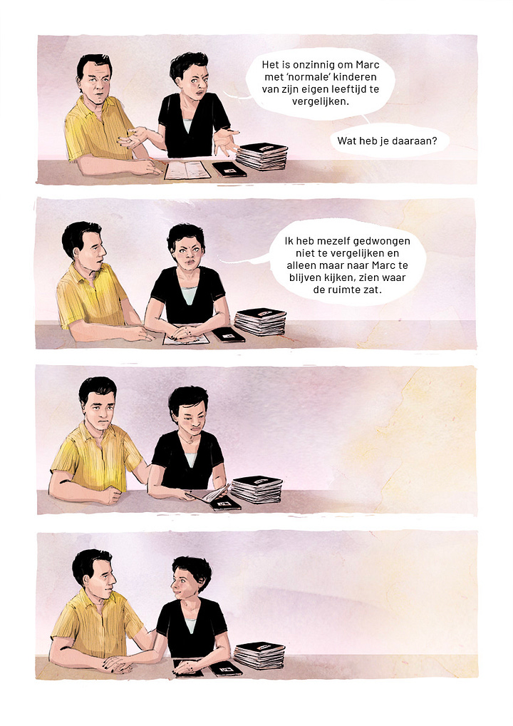 ‘Een inspirerend verhaal, dat wordt verteld in prachtige tekeningen die je raken. Niet alleen zien we hoe Marc heeft gewerkt om zijn droom te verwezenlijken, we volgen ook zijn liefdevolle ouders, die hun autistische zoon altijd hebben ondersteund, ondanks de tegenslagen. Ook dat is topsport.’